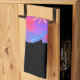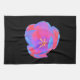 Cette superbe serviette de cuisine dispose d'une belle photo de tulipe. La photographie a été colorée artificiellement, ce qui donne un tulipe fluorescent. Les pétales extérieurs sont colorés dans les tons bleu et rouge, tandis que les pétales intérieurs affichent des tons rose et violet. Le centre même de la fleur est jaune vif. L'arrière - plan noir simple montre la beauté stupéfiante de cette fleur.