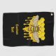 Honey bee with open wings icon over bee hive and honey drops. Custom background color. Custom.