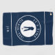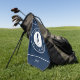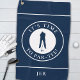 Apportez une touche de personnalité ludique à son jeu avec cette serviette de golf pour hommes de couleur bleu marine véritable. Une silhouette classique de golfeur masculin est centrée à l'intérieur d'un cercle blanc, encadrée par la phrase incurvée « Il est temps de Par-Tir ! ». Le panneau inférieur comporte un espace pour un monogramme personnalisé - initiales, nom ou court texte - parfaitement assorti au design.