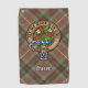 Badge de crête Clan Fraser entouré d'une courroie et boucle sur l'arrière - plan tartan patiné de chasse. Texte personnalisé.