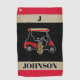 monogrammed towel features a golf cart loaded with clubs