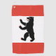 Serviette de golf avec drapeau de Berlin, drapeau d'état avec bandes horizontales de rouge et blanc, avec une illustration d'un ours noir à l'intérieur d'un bouclier