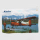 Un pilote de brousse se tient près de son hydravion DHC-2 Beaver de Havilland Canada sur la rive d'un lac à l'extrême nord; les montagnes et les arbres sont au loin. Le texte personnalisable "Alaska" apparaît également. Cette image provient, en partie, d'une photo du US Fish and Wildlife Service.