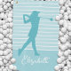 Stylish modern golf design features a female lady golfer action silhouette in teal over a classic coordinating light teal & white striped background. Customize with a name in stylish script with the easy-to-use template. All colors in this design are editable in the design tool. Use the message feature to request a custom color.