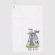 This cute monogram golf towel features a stylish gray watercolor golf bag filled with clubs, surrounded by a touch of green grass. The design cleverly incorporates a simple serif font initial monogram on the bag, seamlessly blending into the bag's design. Below the monogram, the full name is elegantly displayed in script typography, adding a personal touch. The monogram is currently in a dark gray, almost black, but can be customized to any color. Perfect for the lady golfer in your life, this fun and stylish golf towel makes a great gift for Christmas, birthdays, Mother’s Day, or any special occasion. Personalized Initial Name Monogram Golf Towel Gray Watercolor Golf Bag Gift For Her Script Font.