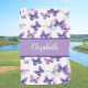 Cette jolie serviette de golf présente des papillons violets sur un arrière - plan blanc, avec un nom personnalisable en texte blanc. Vous pouvez modifier le message pour dire autre chose si vous souhaitez modifier le message ou ajouter un nom de famille. C'est un cadeau élégant et mignon pour un golfeur. C'est un cadeau utile pour votre mère, votre soeur, votre grand-mère, ou toute femme dont le passe-temps est de jouer au golf. Créez vos propres serviettes de golf personnalisées avec nos modèles. Des serviettes de golf mignonnes ou drôles aux serviettes de golf personnalisées avec photos, la boutique Artisan Shopper propose une large gamme de modèles assortis pour hommes et femmes. Nos serviettes de golf en microfibre avec photos et monogrammes peuvent être éditées pour en faire vos propres.