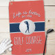 Joli design avec la citation "La vie est meilleure sur le GOLF COURSE!" Le design moderne de typographie ombragée en blanc et bleu est sur un arrière - plan rouge tendance avec une image réaliste de balle de golf et silhouette de golf féminine. La couleur de l'arrière - plan et les polices sont facilement changées dans la section de l'outil de conception extraordinaire de Zazzle où vous pouvez facilement ajouter la personnalisation avec le nom ou les initiales.