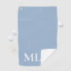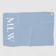Trois lettres blanches sont en bas. Vous pouvez modifier les lettres pour afficher le monogramme correct. Cette serviette de golf monogrammée est bleu bébé.