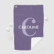 Moderne Simple Classic Initial Purple Golf Towel avec un type moderne et monogramme audacieux.