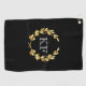 Cette serviette de golf est montrée avec une couronne de laurier d'or sur un arrière - plan noir avec des initiales monogrammes personnalisées en blanc. Customisez cet article et changez les initiales du monogramme en votre nom.