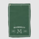 Serviette de golf vert foncé et blanc imprimé avec votre nom de famille dans une arche au-dessus de votre initiale et l'année où votre famille a été établie.