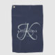 Serviette De Golf Monogramme moderne élégant Script Marine Bleu