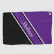 Rendez-vous sur le terrain de golf avec cette serviette de golf. Il a de solides couleurs royales violet et noir avec une bande diagonale et une police de script. C'est un cadeau formidable pour les femmes et les filles qui jouent dans des tournois de golf ou de golf récréatif. Customisez le nom dans les options de personnalisation.