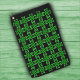 Cette serviette de golf est noire avec un design abstrait d'un motif de noeud celtique irlandais en vert vif avec des boucles entrelacées.