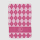 Serviette de golf rose à deux tons prépa avec un motif argyle et des accents blancs croquants. Une bande rose audacieuse comprend un modèle facile pour ajouter trois initiales ou un court monogramme. La disposition intemporelle et l'esthétique country-club en font un choix élégant pour les golfeurs qui préfèrent un look traditionnel et soigné. Personnalisez dans l'outil de conception pour créer votre monogramme parfait. Demandes de couleurs personnalisées les bienvenues.