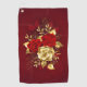 La composition de deux roses rouges artistiquement peintes et d'un rose doré, décoré d'or, feuilles de bijoux sur arrière - plan texturé.