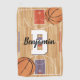 Cette serviette de golf personnalisée a un design de fans de basket avec un terrain de basket et deux balles de basket illustrées. Personnalisé cette serviette de golf avec un prénom ou un nom et une initiale. Un grand cadeau sportif personnalisé pour donner au fan de basket de votre vie qui joue au golf.
