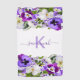 Deux bordures élégantes de violet, de couleur lavande, de fleurs violettes et blanches, des panneaux sur un élégant arrière - plan blanc. Personnalisez et ajoutez votre nom et la lettre monogramme, initiale. Lettres violettes. Le nom est écrit avec un script de style moderne écrit à la main avec des swashes. Pour que les swashes ne suppriment que le nom de l'échantillon, laissez les espaces ou émoticônes devant et après le nom.