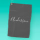 Serviette De Golf Votre nom | Élégant script blanc sur gris