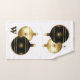 L'élégante décoration monogrammée de cette serviette de toilette est ornée d'ornements de Noël noir et doré contre un arrière - plan blanc de neige pour habiller votre chambre Poudrière pour les vacances ou faire un joli cadeau d'hôtesse.