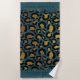Ces serviettes de plage à impression d'animal élégantes peuvent être personnalisées avec votre nom et tout texte personnalisé que vous souhaitez inclure. Avec un fond bleu sarcelle et une impression léopard en or et noir.