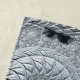 Cette serviette de plage monochrome présente un design fractal en spirale abstrait gris clair et noir.