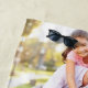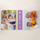 Une serviette de plage moderne comprend 2 photos avec le texte "aime-toi, grand-mère ♥️" sur une épaisse bande violette clair.