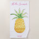 Cette serviette de plage estivale est décorée d'un ananas aquarelle et Hello Summer en rose. Customisez-le avec votre monogramme ou votre nom. Aquarelle originale © Michele Davies.