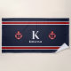 Serviette De Plage Ancre classique Monogramme bleu blanc noir marine