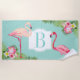 Serviette De Plage Aqua tropicale et Flamant rose rose Monogramme per