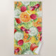 Aquarelle Été La serviette de plage Fruit comprend des fruits appétissants, dont des concombres, des cerises, des framboises, des citrons, des citrons, des limes, des oranges et des sprigs de romarin.