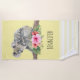 Une serviette de plage à l'aquarelle adorable. Koala ours maman et bébé. Le bébé roule sur le dos de maman. Sur une branche d'arbre. Un bouquet de fleurs d'hibiscus en contrebas. Arrière - plan jaune banane.