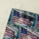 Cette image américaine, drapeau, est mise en évidence, feux d'artifice éclatant, dans un affichage coloré de, rouge, blanc, bleu et jaune, fusées éclairantes - dans un ciel nuageux, crépusculaire, d'ardoise-bleu.