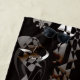 Abstract design with silver geometric shapes of archers and knights at the siege of a medieval fortress castle. Design inspired by medieval castles with a happy look. Perfect for lovers of gothic and medieval aesthetics. Customizable color background.