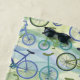 Vélos, tricycles et monocycles bleus, verts et turquoises sur un arrière - plan fluide et coloré.