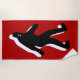 Une serviette de plage rouge fraîche de Bigfoot.
