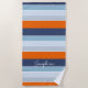 Serviette De Plage Bleus cool et rayures orange nom personnalisé