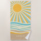 Cette serviette de plage est décorée avec des couleurs bleu et bronzé et est décorée avec des vagues au coucher du soleil. Ajoutez un nom personnalisé pour en faire un cadeau personnalisé pour un amoureux de la plage !