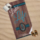 Bois rustique Turquoise Baume bleu La vie moderne est une plage. Palmiers tropicaux feuilles sur bois rustique, Si vous avez une soirée océanique, nautique, tropicale, luau ou piscine, ce design est parfait pour l'occasion.