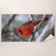 Un cardinal rouge vif ajoute une pop de couleur lors d'un jour de neige morne.