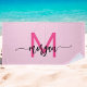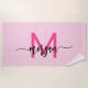 Serviette De Plage Chaud rose moderne Script Girl Monogramme Nom