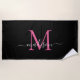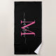 Élégant moderne Magenta Noir Hot rose Monogramme Feminine Script Serviette de plage