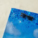 Une belle illustration d'une plage de sable blanc avec ciel bleu et cocktail. Le ciel et le sable sont décorés de parties scintillant en bleu et blanc