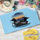 Deux Loons sur le lac avec un coucher de soleil et des cattails derrière eux dans un fond de bleu