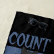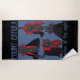 Black cats with crimson capes and golden amulets on a blue background; a playful vampire theme, bold contours; gothic fantasy meets nocturnal charm to create spooky and fun Halloween looks.