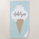 Trouvez facilement votre serviette avec cette serviette de plage super mignonne avec grand nom de calligraphie sur un cône glacé à la vanille dégoulinante avec des arrosages arc-en-ciel. Parfait pour une journée à la plage ou au bord de la piscine. Prenez-le avec vous et ne vous inquiétez pas si quelqu'un d'autre réclame votre serviette.