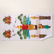 Pele, la déesse du feu, entourée par des tikis, est décrit sur cette serviette de plage lumineuse et colorée.