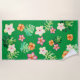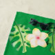 Vous aurez toujours l'impression d'être sous les tropiques avec une serviette de plage à imprimé tropical. Ce design est orné de feuilles verdoyants et de fleurs colorées disposées sur un arrière - plan vert foncé.
