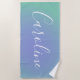 Retro Vert et Bleu | Nom de script personnalisé Beach Towel