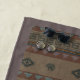 Amérindien, design sud-ouest aztèque est dans une variété de nuances de tans, bruns, rousses et blues. Il y a des cravates tressés en faux cuir qui traversent avec des conchos en argent de part et d'autre.